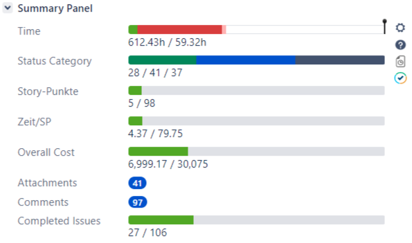 - Time per Story Point progress bar.