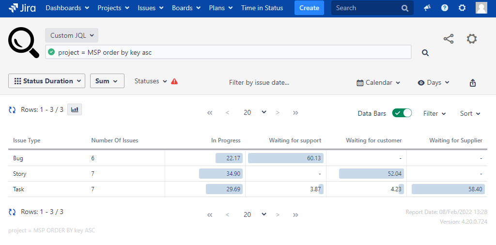 Some Jira apps are very specific in handling one metric really well and that’s true for Time in Status. Time in Status allows Project Managers to visualise projects that are struggling, slowing down, or blocked and have been that way for a while. For Project Managers who need to see bottlenecks above everything, Time in Status is a great add-on because you’ll never have to wonder how long an issue has had to wait. This app is also a great indicator of employees who are too backed up or external departments that often hold up the process, as this visual add-on will help you draw patterns between often-held-up projects or frequent blockers.